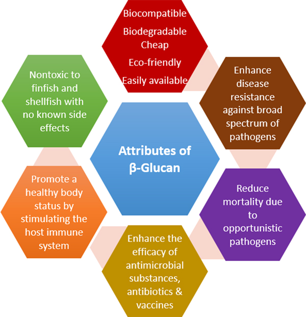 The industry that produces food with the quickest rate of growth is aquaculture. To increase production, intensive techniques including high stocking densities, artificial feeding and fertilization have become common. The industry is facing a variety of difficulties as a result of intensification. The difficulty in achieving larger yields is mostly due to the prevalence of illness in farming systems. To stop a disease epidemic, control and prevention are the most crucial considerations. A potential immunostimulant, β-glucan aids in the control of infections, provides immunity to infectious illnesses, and stimulates immune responses in culture systems.