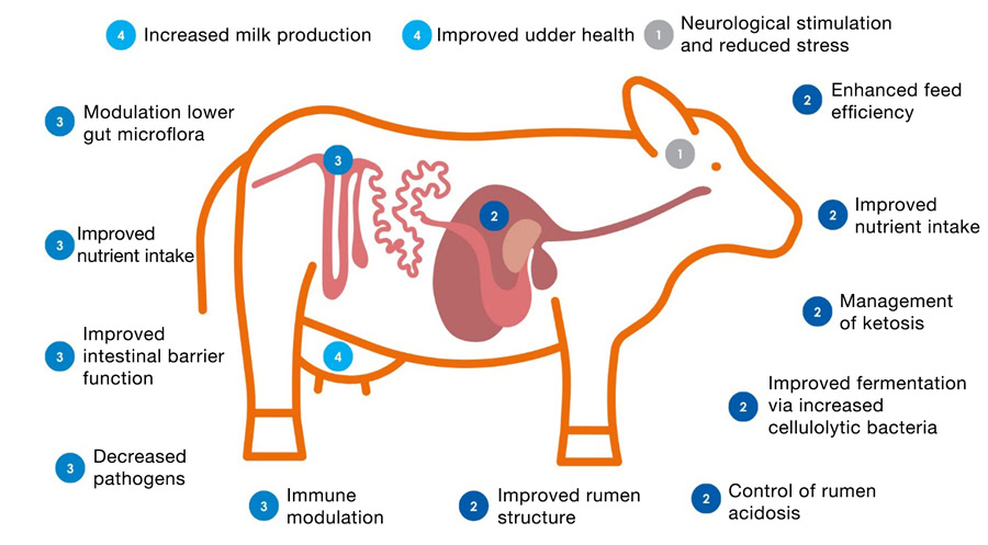 Modern livestock production is facing unprecedented challenges including disease outbreaks, restrictions on antibiotic usage, environmental volatility, economic pressure and increasing scrutiny for sustainability and environmental footprint. Ruminants themselves are methane producers, a gas which has a 28 times greater global warming potential than carbon dioxide, so balancing rumen health to help manage the environmental footprint is of increasing concern. Given the multitude of factors that can affect livestock production, maintaining a healthy digestive system and good gut health is essential for ruminants to both perform efficiently and minimize their environmental impact.