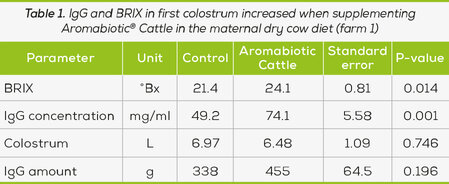 Fast and healthy rearing of calves is an essential element for the farmer to obtain commercial success. This study demonstrated the potential of Aromabiotic® Cattle as part of the dry cow diet to improve colostrum quality.