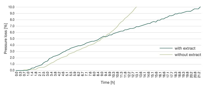 The matrix was processed at 110 °C and 5 bar to assess thermal stability under pressure with a high-shear double twin extruder in pilot scale at 3 kg/h product output.