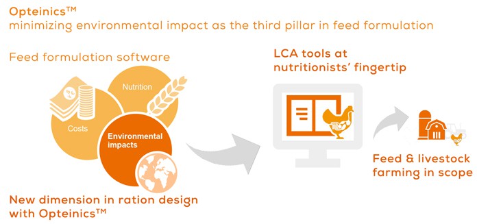 This is the challenge that has motivated BASF Animal Nutrition to develop Opteinics™, an innovative new digital platform that enables feed producers and livestock producers to assess and improve their environmental impact, directly at the feed formulation stage. Making use of Life Cycle Analysis (LCA), a proven scientific method that assesses the environmental aspects and potential impacts associated with a product, Opteinics™ provides full transparency on the environmental impact of both the feed and its value chain. The key difference of Opteinics™ lies in its integration with feed formulation software: thanks to its direct link, time-consuming manual input of hundreds of data is avoided.