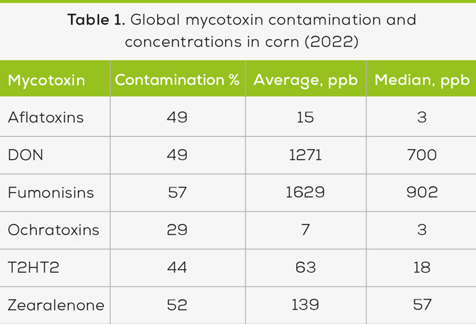 Due to the varied corn growing and storage conditions in different regions of the world, it is important to analyse individual mycotoxin contamination percentages and concentrations by region. Please refer to Table 2 for details.