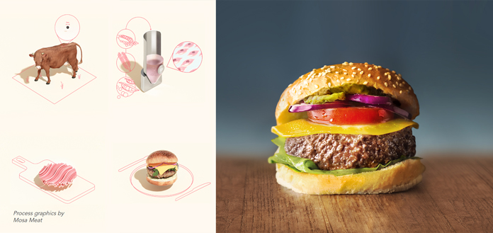 Inspired by research in human medicine, the founders of Mosa Meat were able to demonstrate that beef can be grown from a peppercorn sized sample of tissue that is extracted from a cow without any harm. The meat is produced outside of the cow in an environment that simulates what happens in nature. The cells are placed in a stainless steel tank or “cultivator” that is filled with a nutrient-rich broth of sugars, amino acids, minerals, and vitamins derived from crops. The cultivator is heated to approximately 38° Celsius and the cells multiply by orders of magnitude, eventually growing into both muscle and fat that is harvested and recombined into the same minced beef products that meat eaters love.