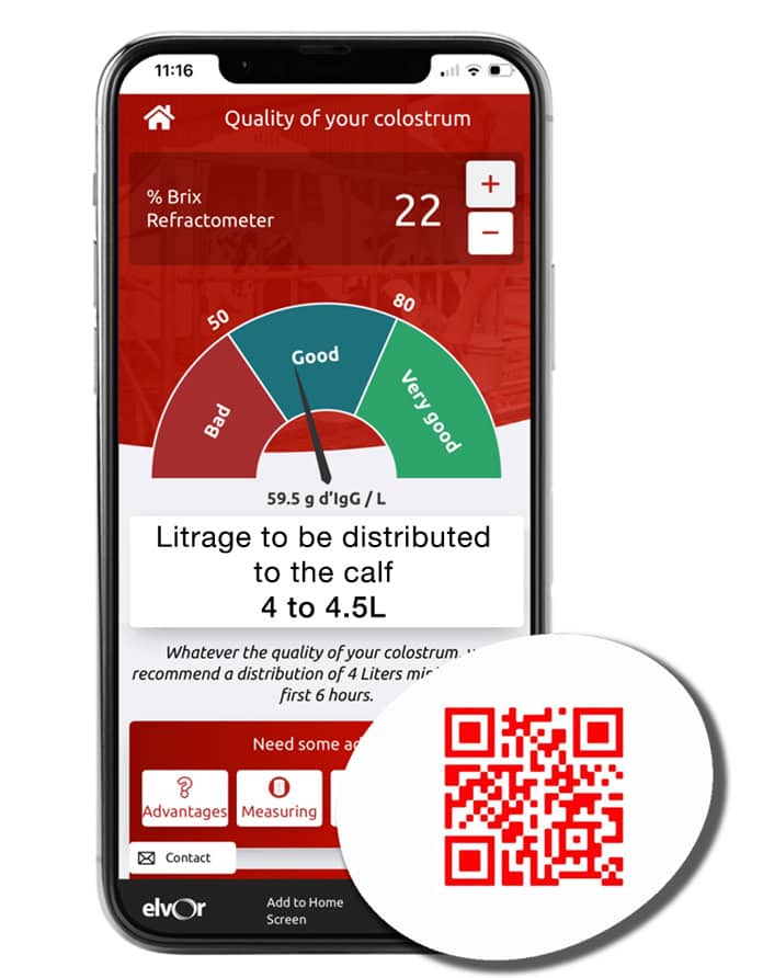Elvor Immune can be administered as a complete or partial replacement of the colostrum: its dosage must be calculated according to quality and quantity of the colostrum. It should be fed within the first two hours of life to maximize immunoglobulin absorption. Farmers can reconstitute the appropriate dosage in warm water or in the mother’s colostrum: it guarantees the newborn receives essential systemic protection and local intestinal defence, regardless of maternal colostrum quality. Elvor App can help to check colostrum quality and to give the recommended Elvor Immune dosage.