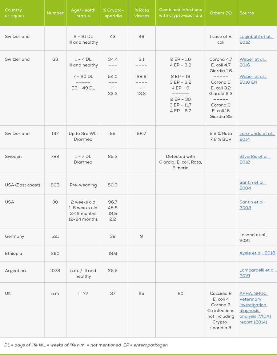 Several studies in different regions, which examined calf diarrhea and its triggers in more detail, came to a similar conclusion: Cryptosporidia are one of the most common causes of calf diarrhea. In addition, mixed infections often occur.