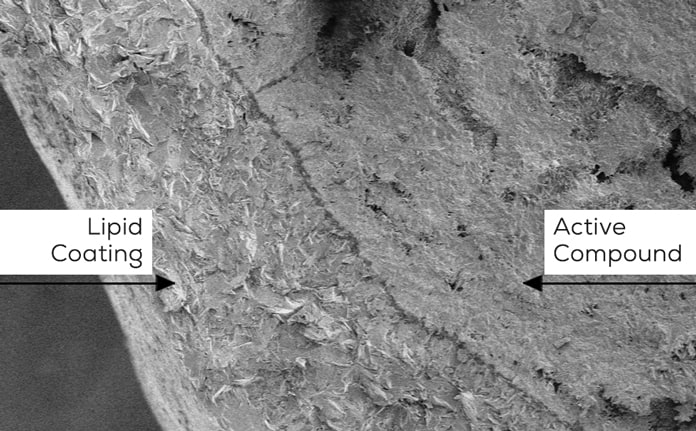 There are two main types of lipid encapsulation technology: true encapsulation and matrix encapsulation. A matrix encapsulation suspends the active nutrient within a fatty acid matrix (Figure 1) while a true encapsulation contains a layered coating of fatty acids applied around the outside of the nutrient to form a protective barrier (Figures 1 and 2).