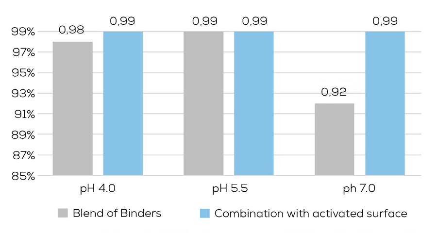 Anta®Catch is made from carefully selected raw materials that have been combined to provide the best protection against endotoxin-related problems. The product is activated in a unique process. This is achieved through rectification of the cations on the product’s surface, thus enabling Anta®Catch to immobilise endotoxins over a wide pH range, effectively catching a large amount of endotoxins in the animal’s digestive tract (Figure 2).