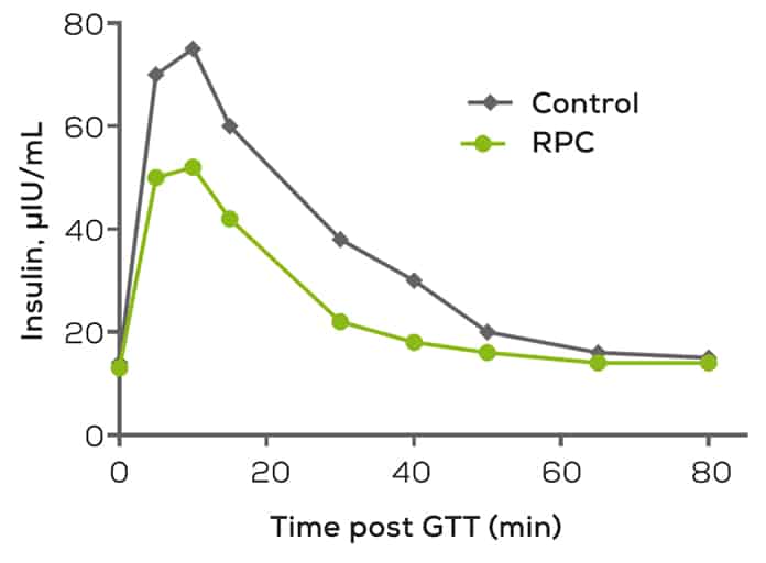 Overall, these results could suggest that, by decreasing the amount of insulin secreted, RPC may have redirected glucose for milk production in lactating dairy cows.