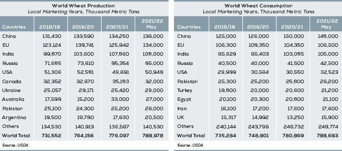 Since March, projections for the 2021/22 season have also begun to form. Despite the drought, which is effective in many regions, the increase in world wheat production is expected to continue in the 2021/22 season. The IGC’s projection on May 27 is that production will reach 790 million tons with an increase of 16 million tons.