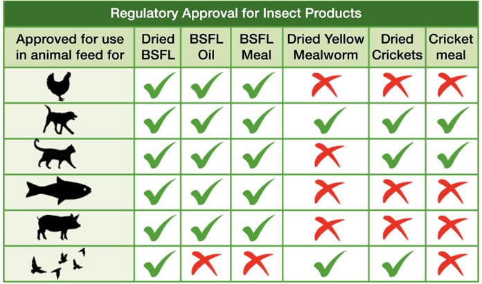 Black soldier fly has seen the most extensive regulatory success to date. BSF ingredients are approved for use across a wide range of animal species, including poultry, aquaculture species, swine, and multiple pet food applications. These approvals reflect a growing body of safety data, nutritional research, and real-world feeding experience.
