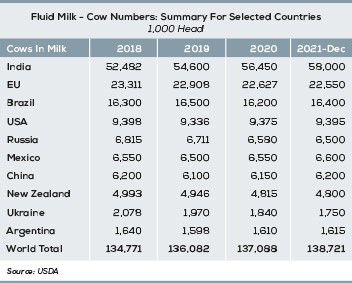 NUMBER OF MILK COWS IN THE WORLD