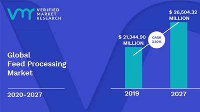 According to the Global Feed Processing Market report published by Verified Market Research; global feed processing market was valued at USD 21,34 billion in 2019 and is projected to reach USD 26,50 billion by 2027, growing at a CAGR of 3.92% from 2020 to 2027.