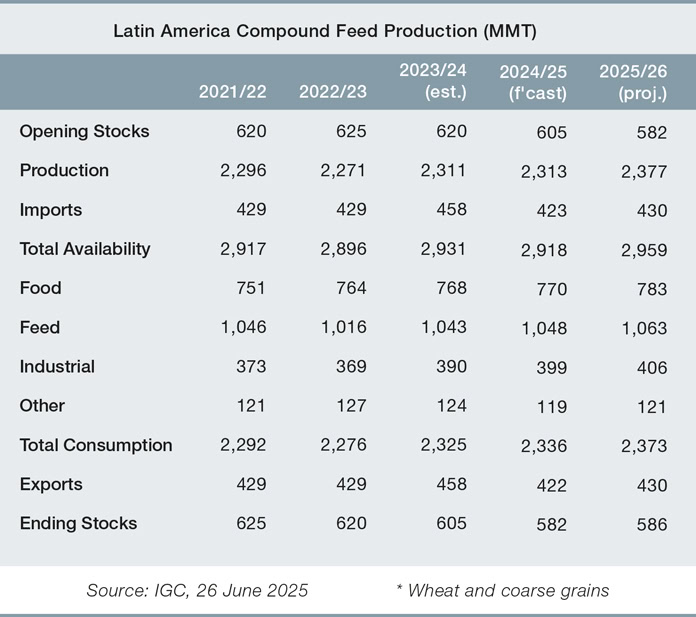 Global grain consumption continues to increase, reflecting stable demand for food, feed, and industrial use. The IGC estimates that global grain consumption reached 2,336 million tons in the 2024/25 season and projects a record increase to 2,373 million tons for the 2025/26 season. It is estimated that a significant portion of grain consumption in the 2025/26 season, approximately 1,063 million tons, will be used for feed purposes. During the same period, food consumption is projected to be around 783 million tons, while industrial consumption is expected to be approximately 406 million tons.