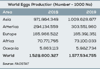 According to FAO data, total egg production in the world amounted to 1.528 billion units in 2018. In 2019, this figure reached 1.577 billion. The largest share of production in 2019 (almost 64 percent of total production) belongs to Asian countries. China has a huge share of production in the region. Because with a production figure of 576 billion in 2019, China is the country that produces the most eggs on a global scale.
