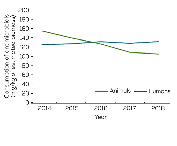 This change is the result of a significant decrease in antibiotic usage among food-producing animals, suggesting that the country-level measures implemented to reduce antimicrobial use in food-producing animals are effective.