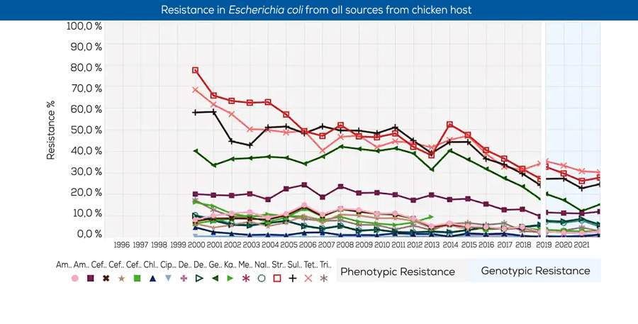 Does reducing antimicrobial use lead to the reduction of AMR? The resistance of different antimicrobials has been monitored for many years in some countries. Data from the US demonstrates that the reduction of antimicrobial use in chickens leads to a reduction in AMR (Figure 2). Similar trends are observed for other countries.