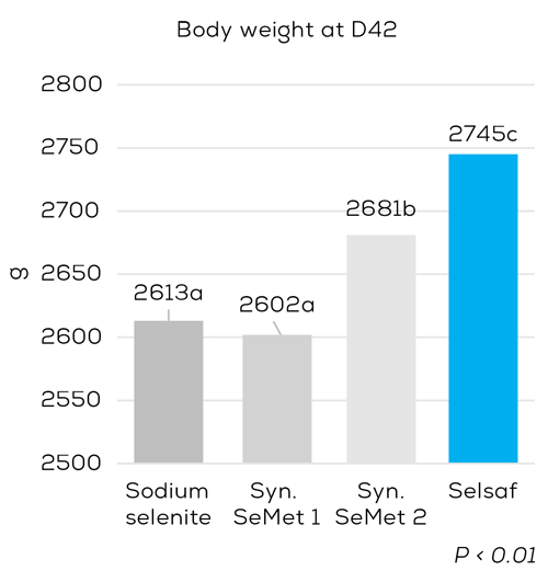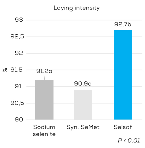 Furthermore, trials comparing the efficacity of the organic selenium enriched yeast Selsaf with synthetic organic SeMet products have demonstrated that Selsaf can greatly improve the production capacities of both broilers and layers (Figures 3 and 4).