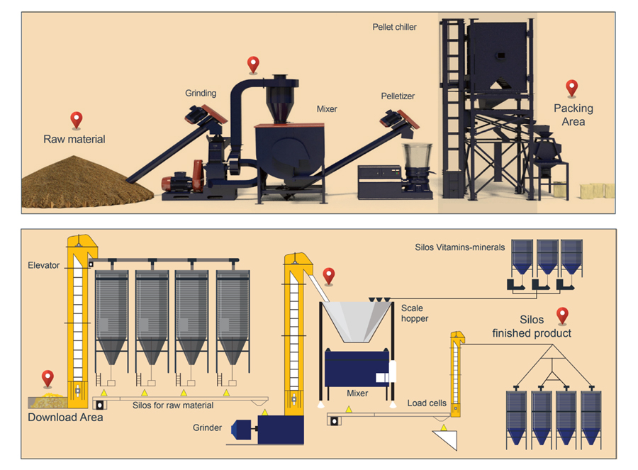 3. In the feed mill and storage warehouse