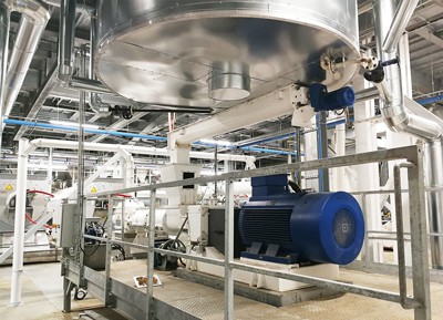In the following, the design and the process of a hydrothermal plant from AMANDUS KAHL are explained: Prior to hydrothermal treatment, the soybeans are crushed on a crushing roller mill. After crushing, the product is free-flowing and can be heated up quickly due to its high specific surface area.