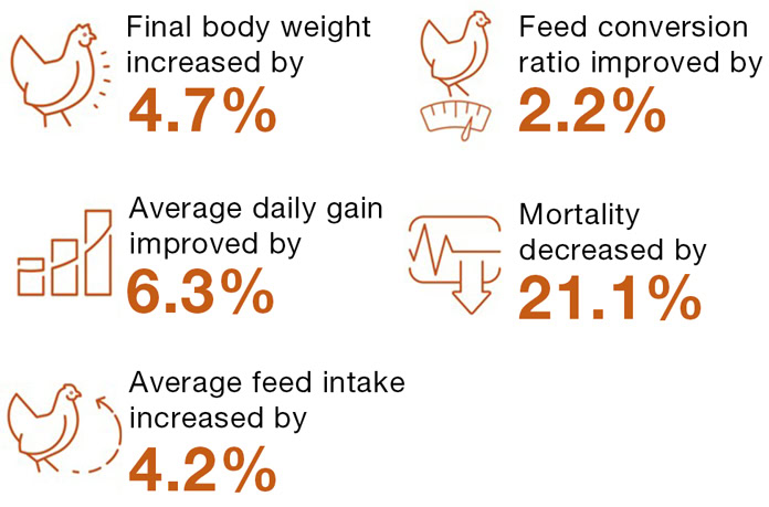 With gut health being key for the efficient digestion and absorption of nutrients, it is vital to support and maintain gut health to achieve optimal growth and development of chickens, which can be achieved through the supplementation of the diet with MRF. The results from the above-mentioned meta-analysis demonstrate improved performance parameters with MRF.