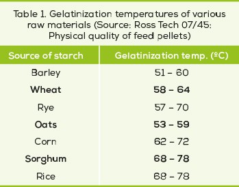 The cereal grain used (corn vs wheat) and its inclusion percentage will influence quality since, depending on the origin of the starch, the target temperatures needed to achieve gelatinization will be different (see Table 1).
