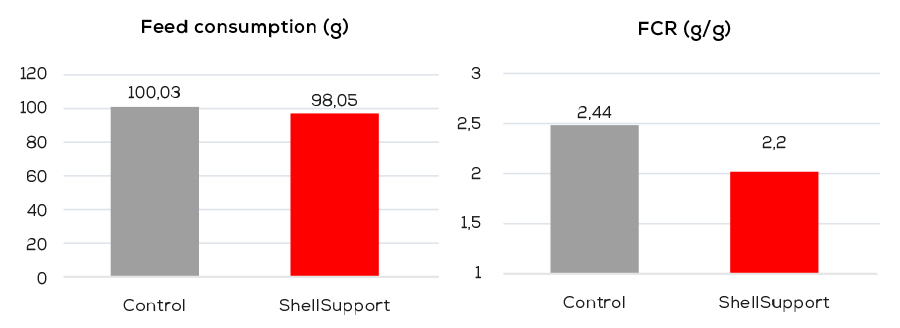 On the other hand, it was found that feed consumption in the experimental groups containing ShellSupport was lower than in the control groups and the groups without Shell Support, and the feed utilisation coefficient was lower.