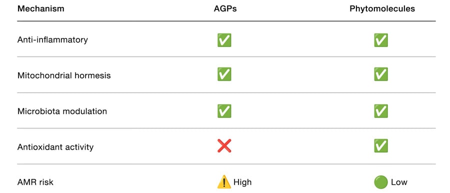 When properly standardized and formulated for controlled release, phytomolecules deliver growth promotion, feed efficiency improvements, and disease resistance comparable to AGPs, while potentially offering advantages in AMR risk profile, stress resilience, and consumer acceptance.