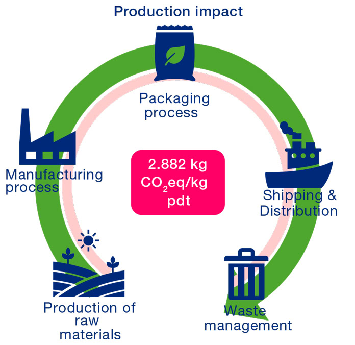 To comprehensively evaluate NUQO©NEX’s environmental footprint, a thorough study was undertaken, encompassing all stages of its production and application. This comprehensive analysis took into account the carbon emissions associated with raw material sourcing, manufacturing processes, packaging, distribution, and waste management. The culmination of these factors yielded a total carbon footprint estimate of 2.882 kg CO2 eq per kilogram of product.