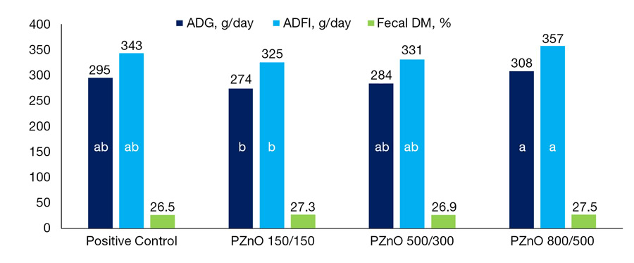 The results were clear: increasing PZnO improved average daily gain and feed intake across the trial, while feed efficiency was particularly improved in phase 1. Importantly, piglets receiving either PZnO or high ZnO showed firm fecal consistency, with dry matter content above 26%, indicating good gut stability (Figure 2). These results demonstrate that lower doses of PZnO, even at European Union regulated inclusions, can achieve the same positive outcomes as pharmacological ZnO, in terms of feed intake, growth rate, feed efficiency, and diarrhea control, while managing diets within the optimal ABC-4 range of ~250 mEq HCl/kg.