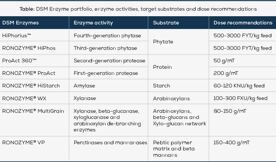 5. Precision nutrition. Finally, a dialogue with a local feed enzyme technical specialist is recommended because application of enzyme matrices, admixture selection and dosing should be done, whenever practical, with prior knowledge of the basal diet and live production targets. Tailored recommendations can be delivered that best suit the specific goals of the nutritionist, diet composition and desired formulation approaches.