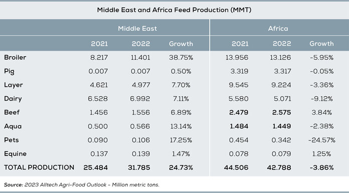 The Middle East and Africa are far behind in compound feed production compared to other regions in the world, but they also attract attention as the regions most open to development. According to the Agri-Food Outlook 2023 report by Alltech, 74.6 million tons (5.9%) of world compound feed production, which was 1.266 billion tons in 2022, was realized by Middle East and Africa countries.