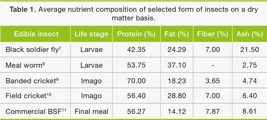 6. Rumpold, B.A., Schluter, O.K. 2013.Nutritional composition and safety aspects of edible insects. Mol. Nutr. Food Res. 57, 802–823; and *Kemin Internal Documents