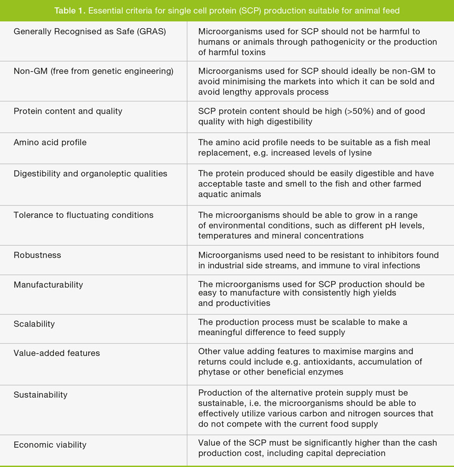 One promising solution is single cell protein (SCP), which refers to protein derived from microorganisms such as bacteria and fungi. SCP has several advantages over conventional feed ingredients, such as fast growth rate, low land and water use and potential to utilise waste streams as substrates. However, for a microorganism to be considered suitable for SCP production, it must meet a range of criteria (Table 1).