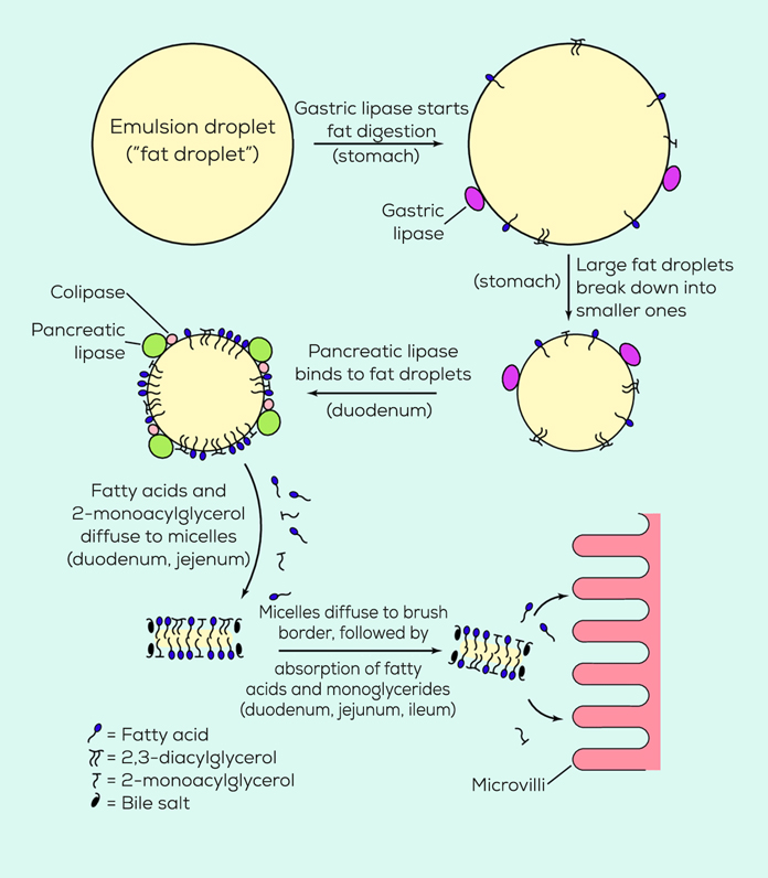Fat digestion is a complicated process and occurs in 3 main steps: