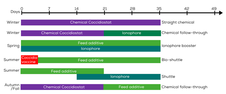 Anticoccidial drugs have been used for decades, but new regulations, consumer preferences and resistance concerns are changing coccidiosis management. Rotation, shuttle, and bio-shuttle coccidiosis programs have become more widely used. A strategic and comprehensive approach can help achieve optimal coccidiosis management.