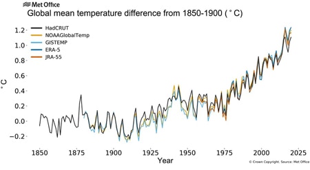 Temperatures have risen approximately 2.12 degrees Fahrenheit (1.18 degrees Celsius) since the late 19th century.