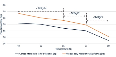 A meta-analysis of publications in the period 1970-2009 revealed the effect of heat stress on feed intake to be more pronounced in recent years. The need for a nutritional strategy to combat the ever-increasing phenomenon of heat stress during lactation is urgently needed.