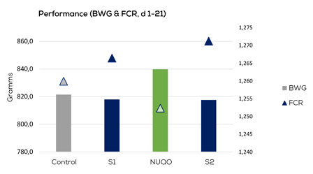 Performance results at 21 days are well in line with the observed effects on digestibility (Figure 2). The new concept, which had the strongest effects on nutrient and mineral digestibility, also had the highest improvement in performance at 21 days, with better gain (+2,2%) and improved FCR (-0,6%) as compared to the control.
