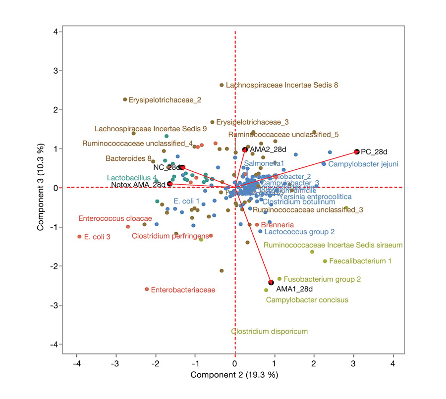 We evaluated multiple AMAs and found significant variations in their ability to protect the intestinal microbiota from mycotoxin-induced disruption. Encouragingly, we discovered that some AMAs, like Notox™ AMA, showed significant benefits and improved microbiota maturation, restoring favorable microbial profiles in birds fed DON-contaminated diets, and bringing the gut ecosystem closer to that observed in healthy animals.