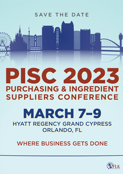 Early-bird registration is available now until Jan. 6 for $650 for AFIA members and $2,200 for nonmembers. Following that date, the fee will increase to $725 and $2,500, respectively. Through the Buyers to PISC program, member-company professionals in buying roles who normally would not be able to attend the event are invited to apply for a conference scholarship.