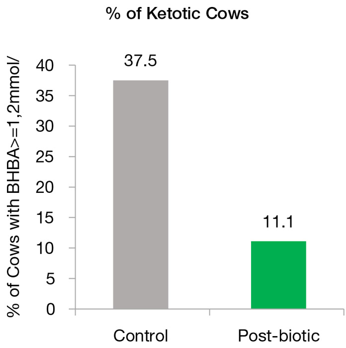 In another commercial trial with Holstein transition cows, Poland (2015), the same rumen-specific live yeast combined with specific yeast product from Lallemand, reduced the number of ketotic cows by 26.4% compared to the control group (Figure 3).
