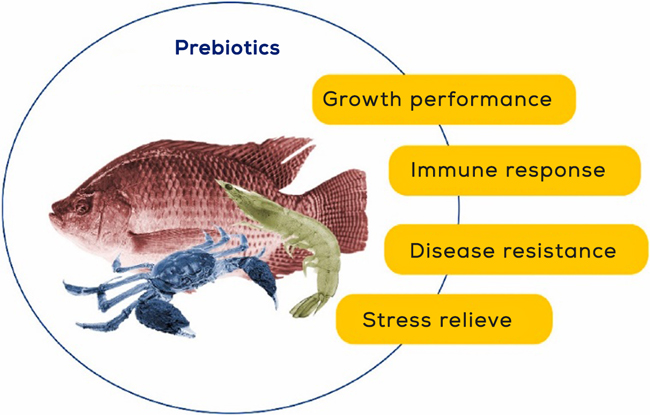 Prebiotic supplementation in fish feed may help in changing the community of bacteria in gastrointestinal tract, improving immune system and increasing growth rate.