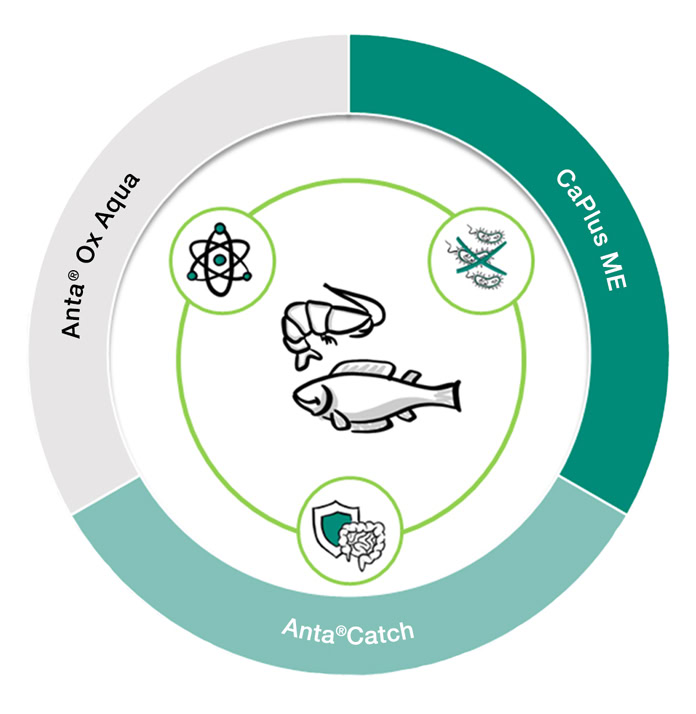 At Dr. Eckel Animal Nutrition, scientific rigour and a deep understanding of industry challenges shape the development of our entire product portfolio. For aquaculture, this expertise is reflected in three dedicated solutions: Anta®Ox Aqua, CaPlus ME and Anta®Catch. Each has been carefully designed to address the sector’s most urgent needs—offering distinct benefits, yet united by a shared goal: To empower farmers to produce healthier animals, reduce environmental impact, and operate more efficiently in a competitive global market.
