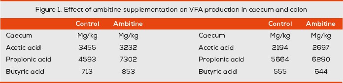 To cope with stress, it all begins in the gut. Erratic feed intake caused by increased feeder competition or other environmental stressors can lead to gut atrophy. Atrophy impacts the gut’s ability to absorb nutrients, forcing a decline in digestive efficiency. Modulating the balance and driving the expression of the microbiome through relevant use of functional ingredients can regulate serotonin biosynthesis and influence nutrient digestibility. The multi-component, plant-based ingredients in Ambitine® push back on the threat of reduced efficiency by stimulating digestive secretions to support gut functions. A recent study has indeed shown that Ambitine® boosts intestinal integrity by increasing diversity of beneficial gut bacteria and increasing endogenous production of volatile fatty acids such as butyric acid (See Fig 1).