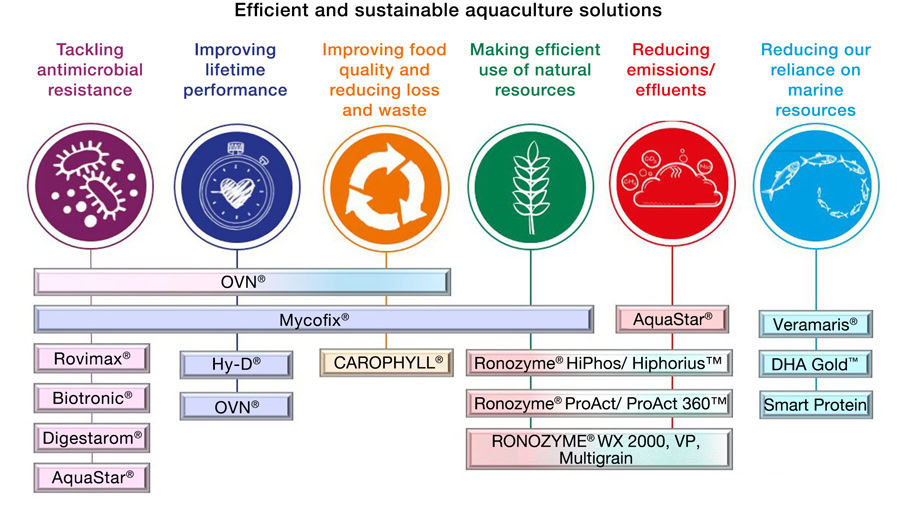 Examples include the concept of OVN Optimum Vitamin Nutrition® and eubiotic portfolio. OVN Optimum Vitamin Nutrition® targets feeding animals high quality vitamins in the right amounts and ratios appropriate to their life stage and growing conditions.