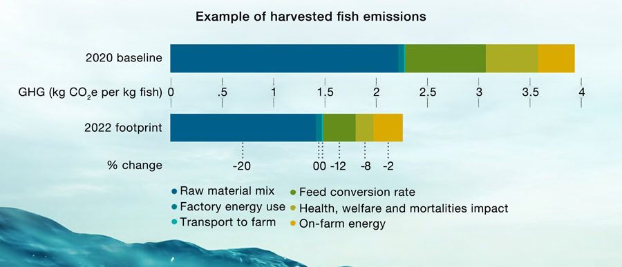 LCA considers the resource use for an output of animal production, and therefore mortality lowers the output. Calculations have been done to highlight the savings in greenhouse gases (GHG) emissions when mortalities are reduced or avoided. For example, if an average Norwegian salmon farm could avoid a 20% fish loss, 2100 tonnes of CO2e would be saved (Biomar Sustainability report 2022). This 2100 tonnes CO2e saving is equivalent to the annual GHG emissions of 450 cars. Recent examples also include Cargill Aqua Nutrition SeaFurther initiative. Using 2020 baseline, health, welfare and mortality had a 12.5% contribution to the overall carbon footprint, while interventions lowered GHG emissions (kg CO2e per kg fish) by 8%.