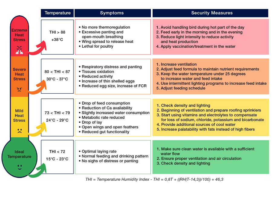 Heat stress can represent a pressing concern during the summer season. With temperatures frequently above 30 degrees surpassing the 25 degrees comfort range for a poultry, the physiological challenges become more pronounced.