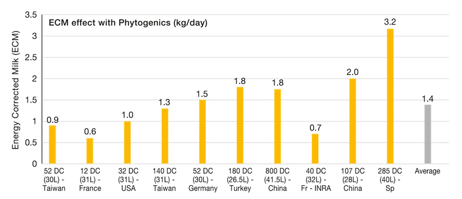 Research with phytogenics has been shown to support the increase in milk production and improvements in milk quality in field trials, demonstrating its effectiveness in improving feed efficiency. The results in this field trial highlight the potential of phytogenic feed solutions to revolutionize dairy farming by providing solutions that may support farm profitability and environmental sustainability (Graphic 1).