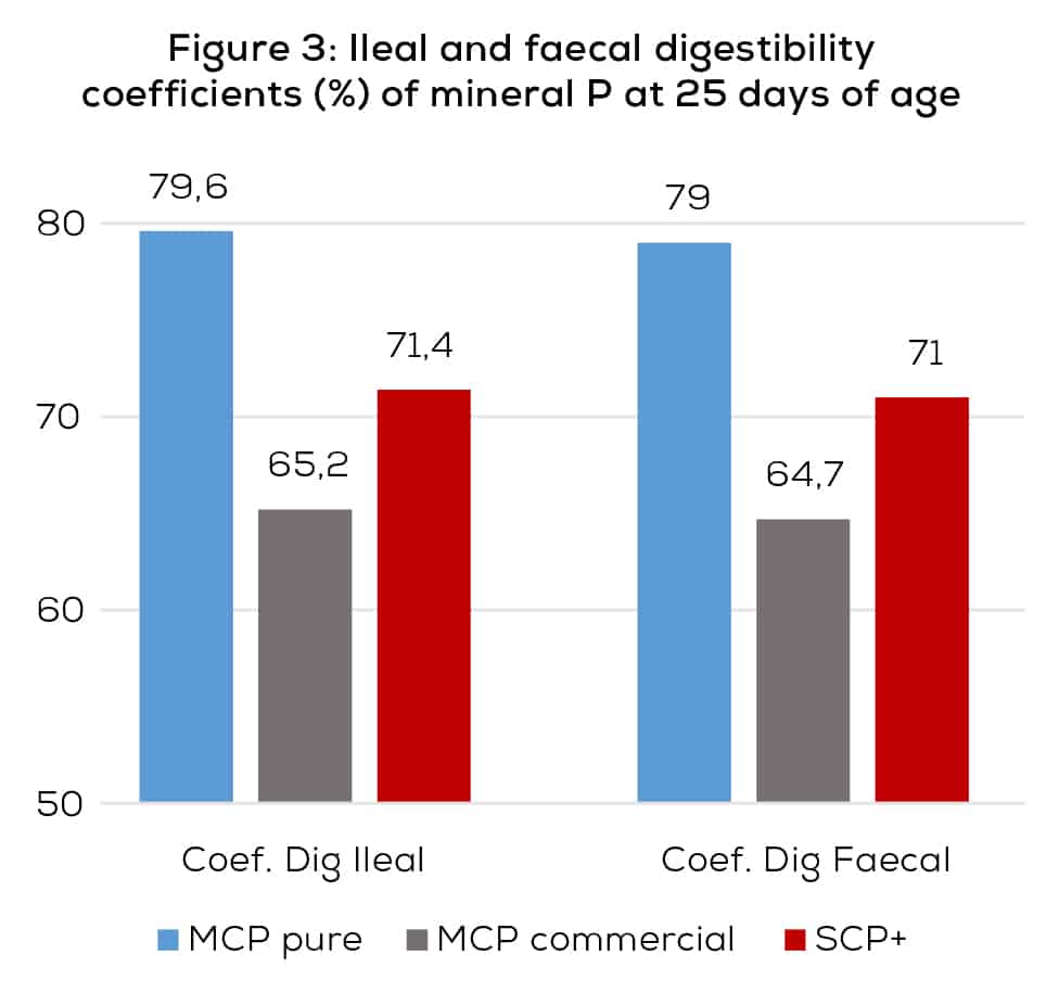 Results obtained by measuring the ileal and faecal digestibility of phosphorus from the mineral phosphates are shown in Figure 3.