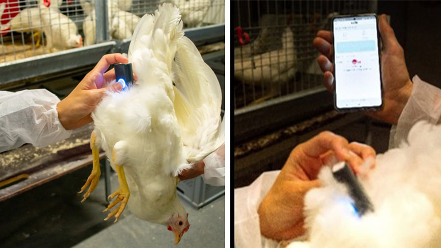 • Scan the hen: REVEAL™ technology uses NIR light absorbed through the skin to measure fat pads,